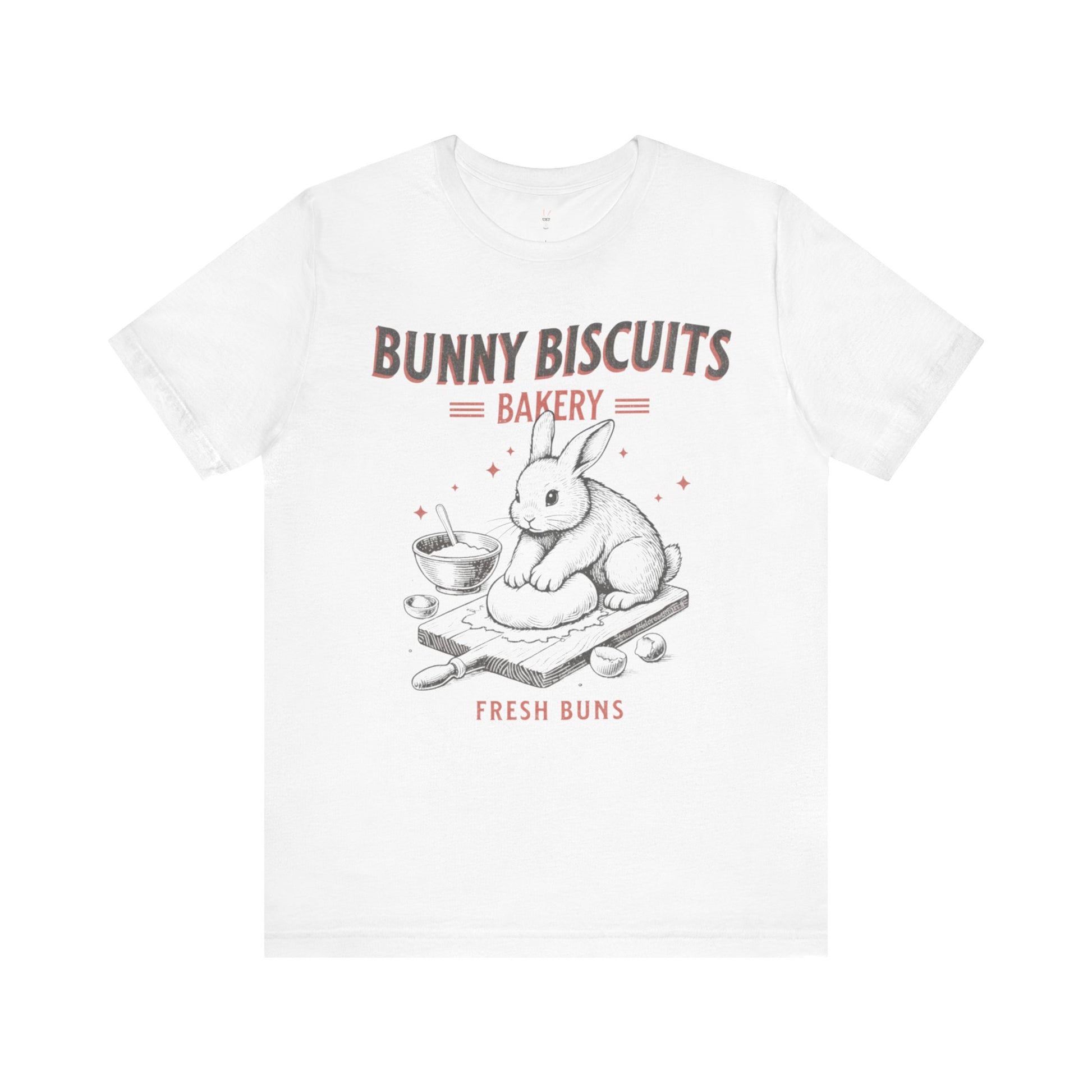 Fresh out of the cutest bakery you’ve ever imagined, the Bunny Biscuits Bakery T-Shirt blends cozy charm with playful humor. Featuring an adorable baking bunny and vintage-style bakery lettering (“Fresh Buns”), this design delivers warm café vibes with a rabbit-loving twist.