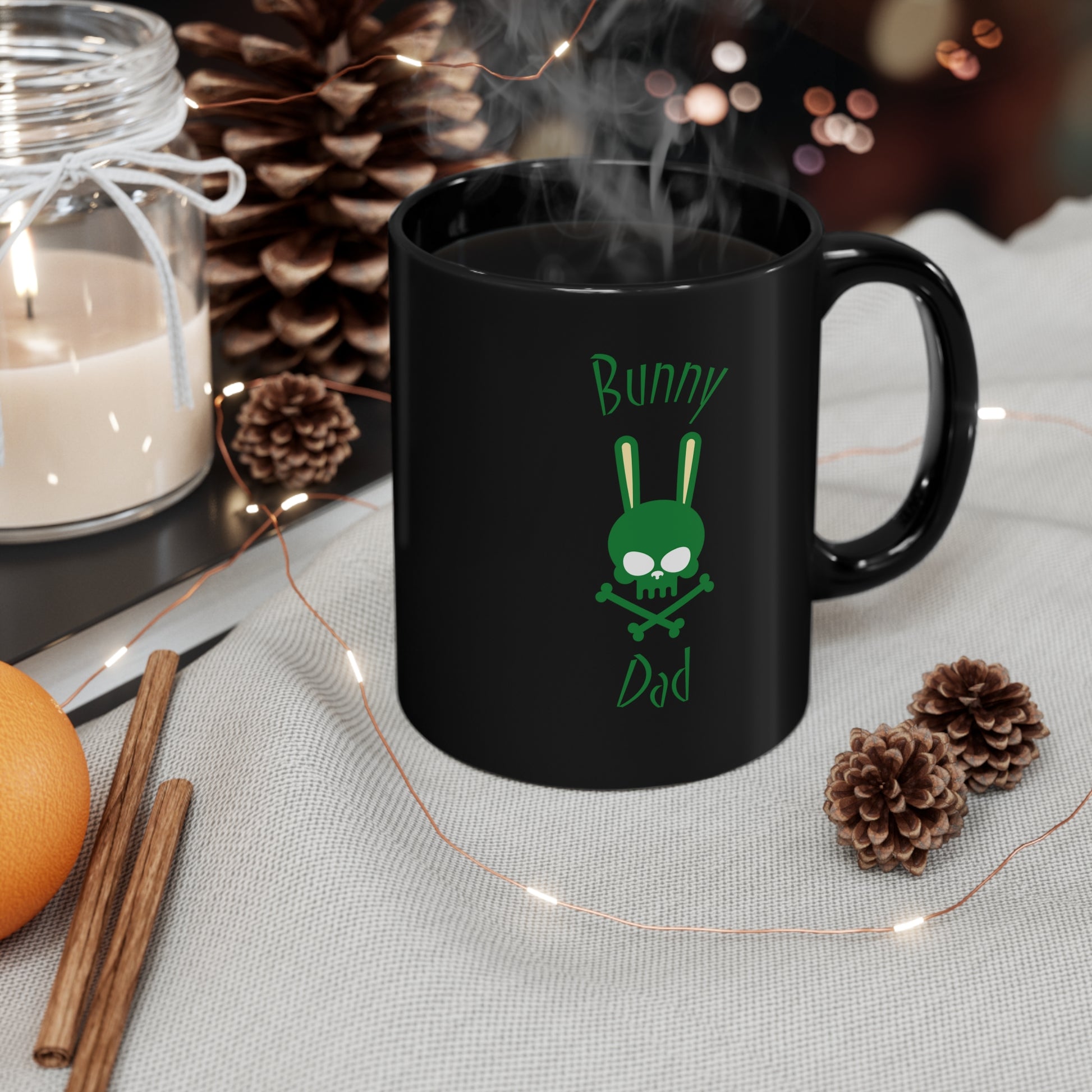 Bunny Dad Black Mug, 11oz