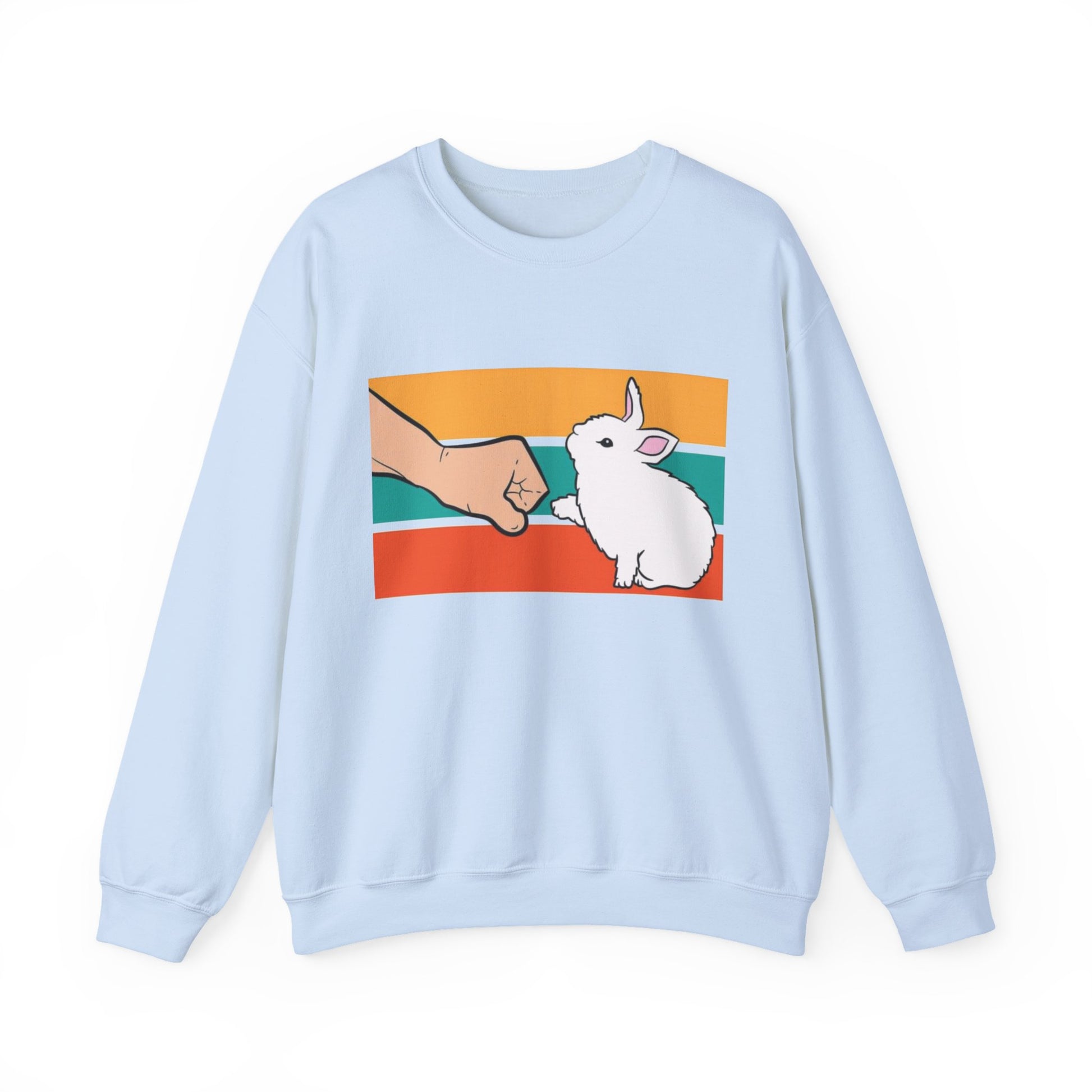 Spread good vibes and fluffy love with our Bunny Fist Bump Sweatshirt! This adorable design captures the perfect moment of friendship between human and bun — a sweet little fist bump that says “you’re my favorite hooman.”