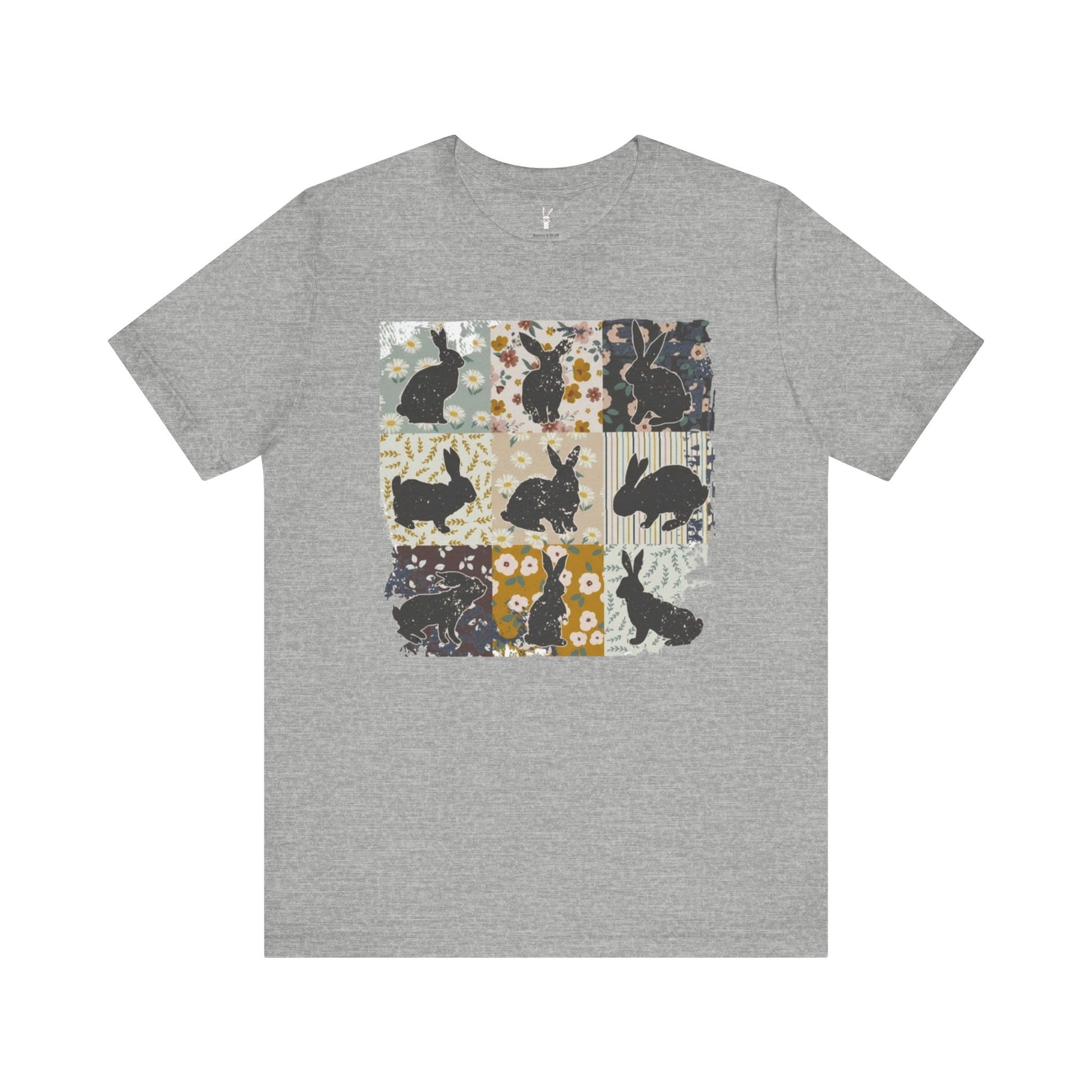 Bring cozy cottage-core vibes to your wardrobe with this Vintage Floral Patchwork Bunny T-Shirt. Featuring nine charming bunny silhouettes set against a mix of retro floral and striped patterns, this tee blends whimsy, warmth, and a touch of rustic style. Perfect for rabbit lovers, nature fans, and anyone who loves soft, artistic designs. Made for comfort and everyday wear, it’s the go-to shirt for spring, summer, and all things bunny-themed.